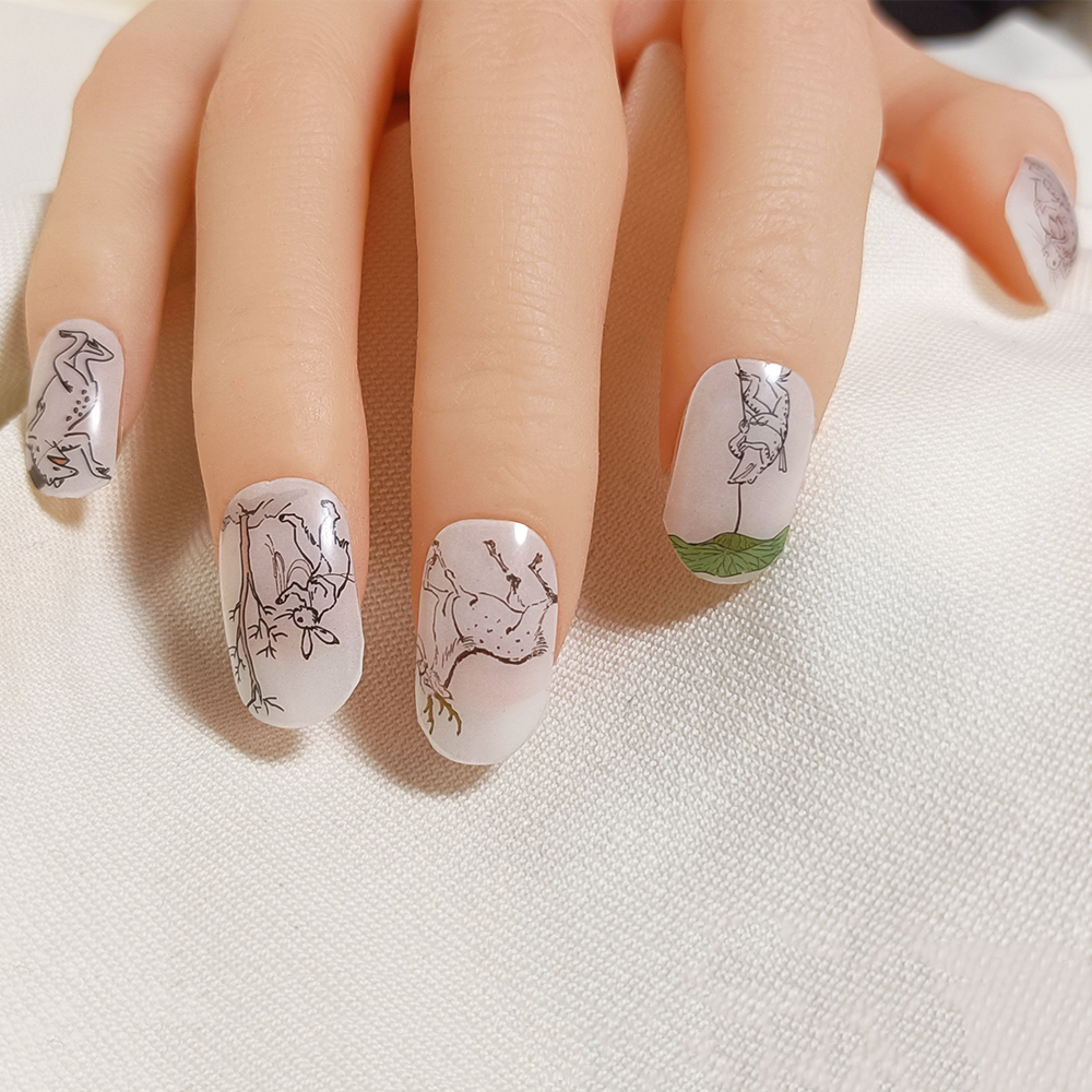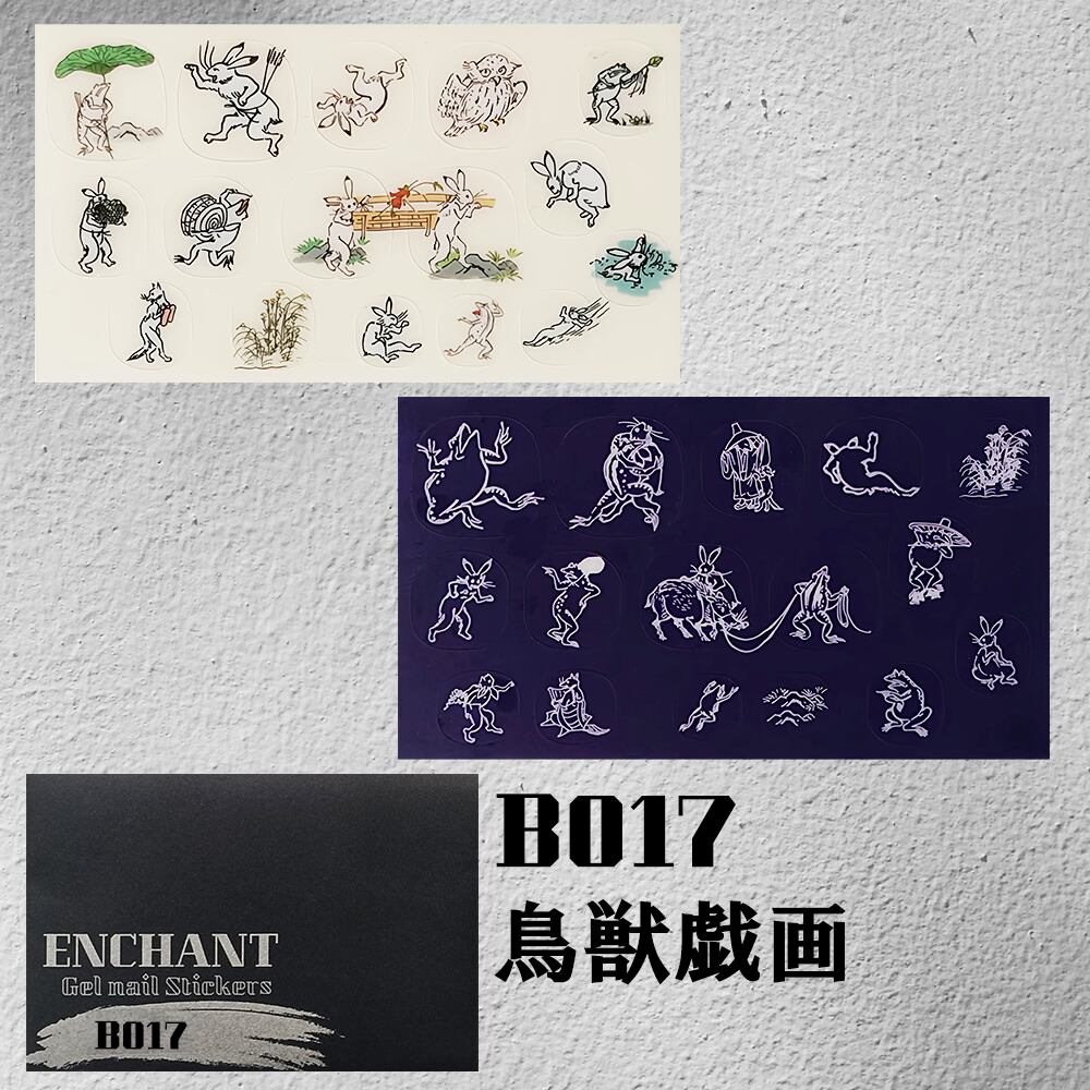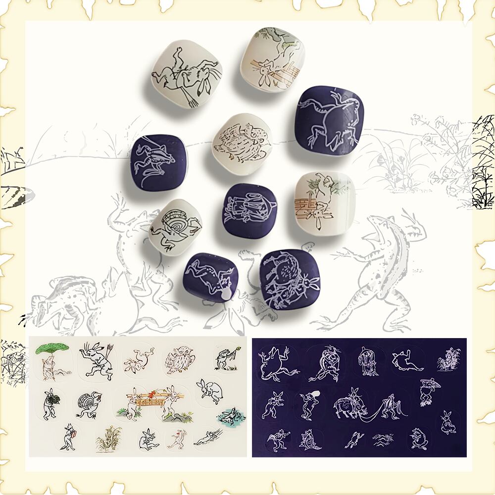 半硬化ジェルネイルシール「Gel Nail Stickers」017 鳥獣戯画