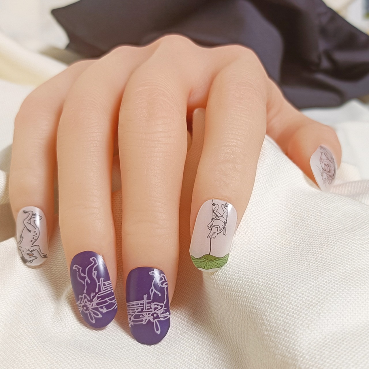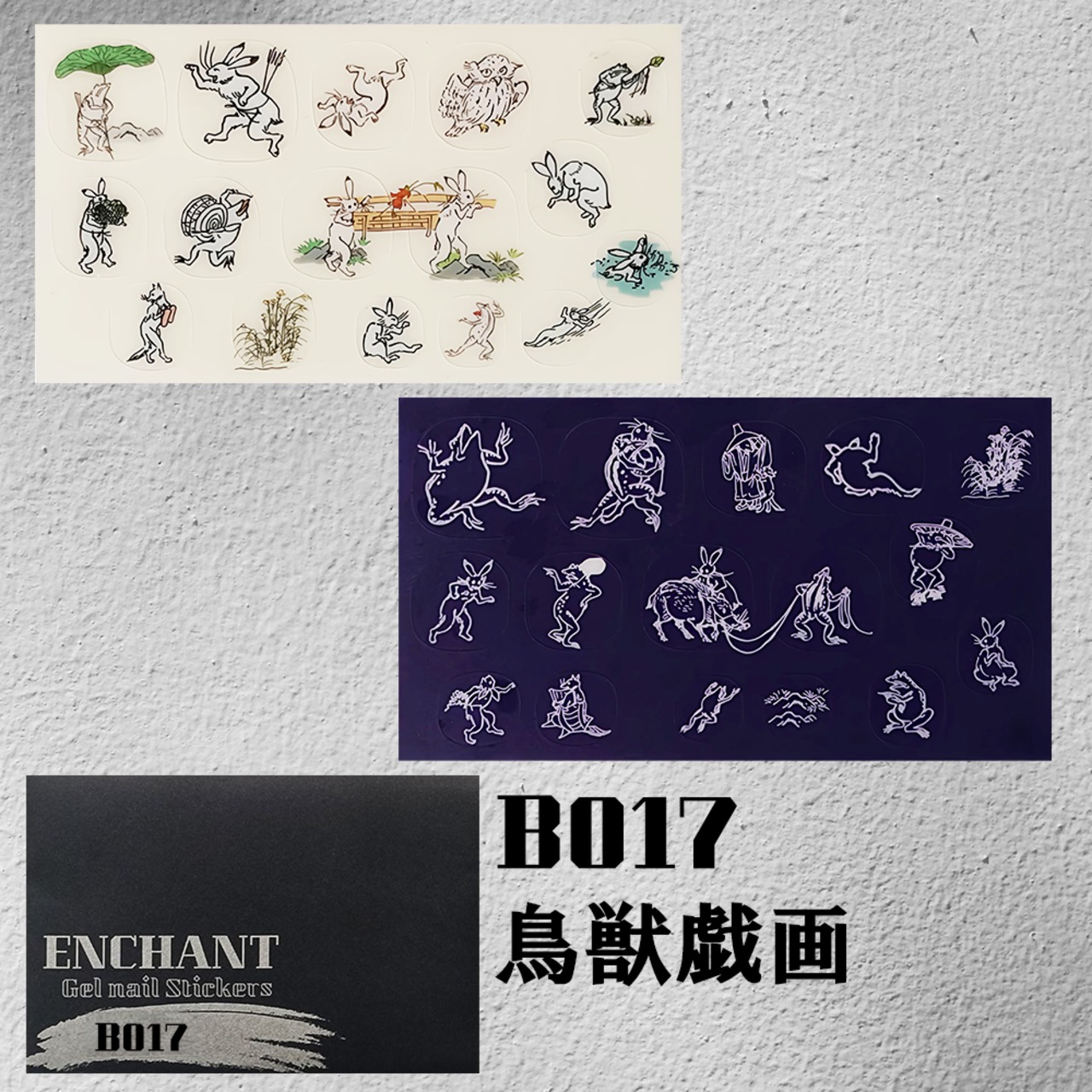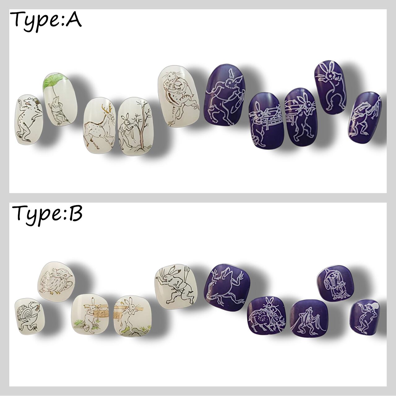 半硬化ジェルネイルシール「Gel Nail Stickers」017 鳥獣戯画