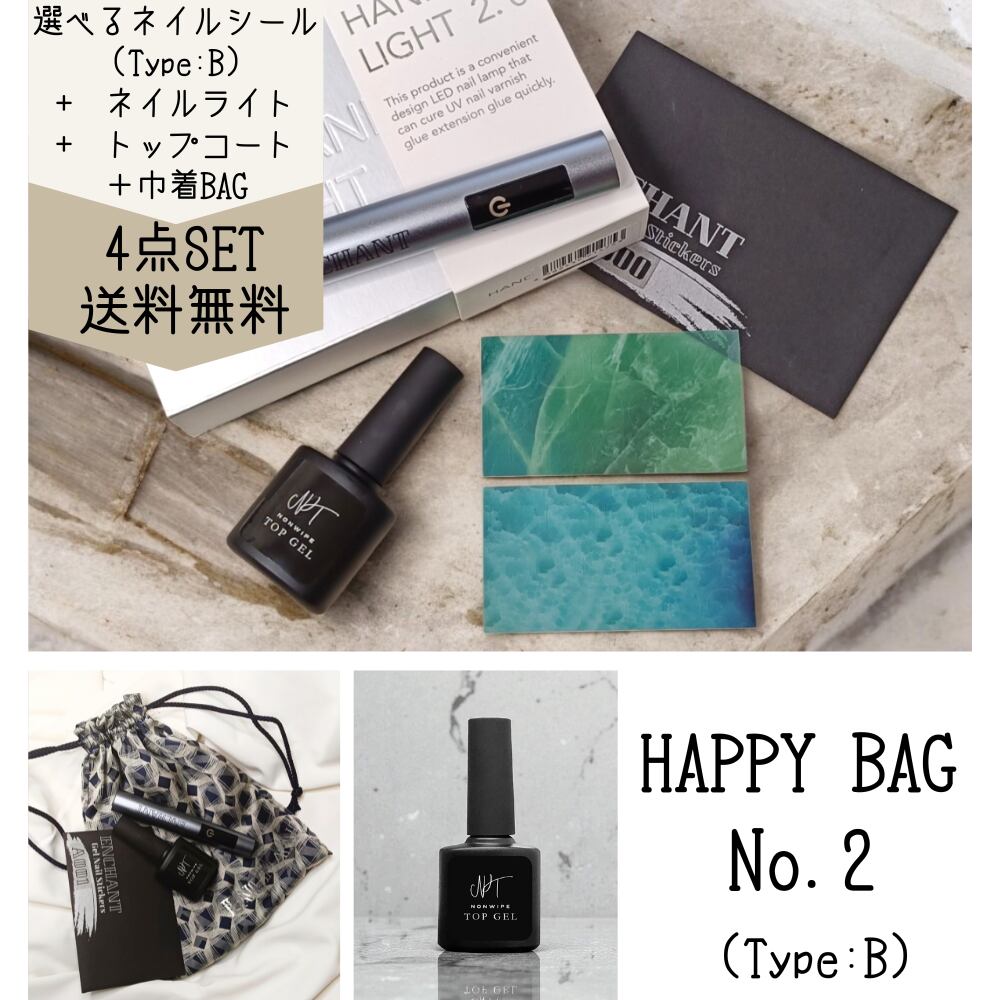 《福袋》【HAPPY BAG No.2】半硬化ジェルネイルシール+ライト+トップコート+数量限定巾着バッグSET ◆ ネイルシールType:B(B001-021)&ネイルライト「Hand Light」&ジェルネイルトップコート&巾着バッグセット